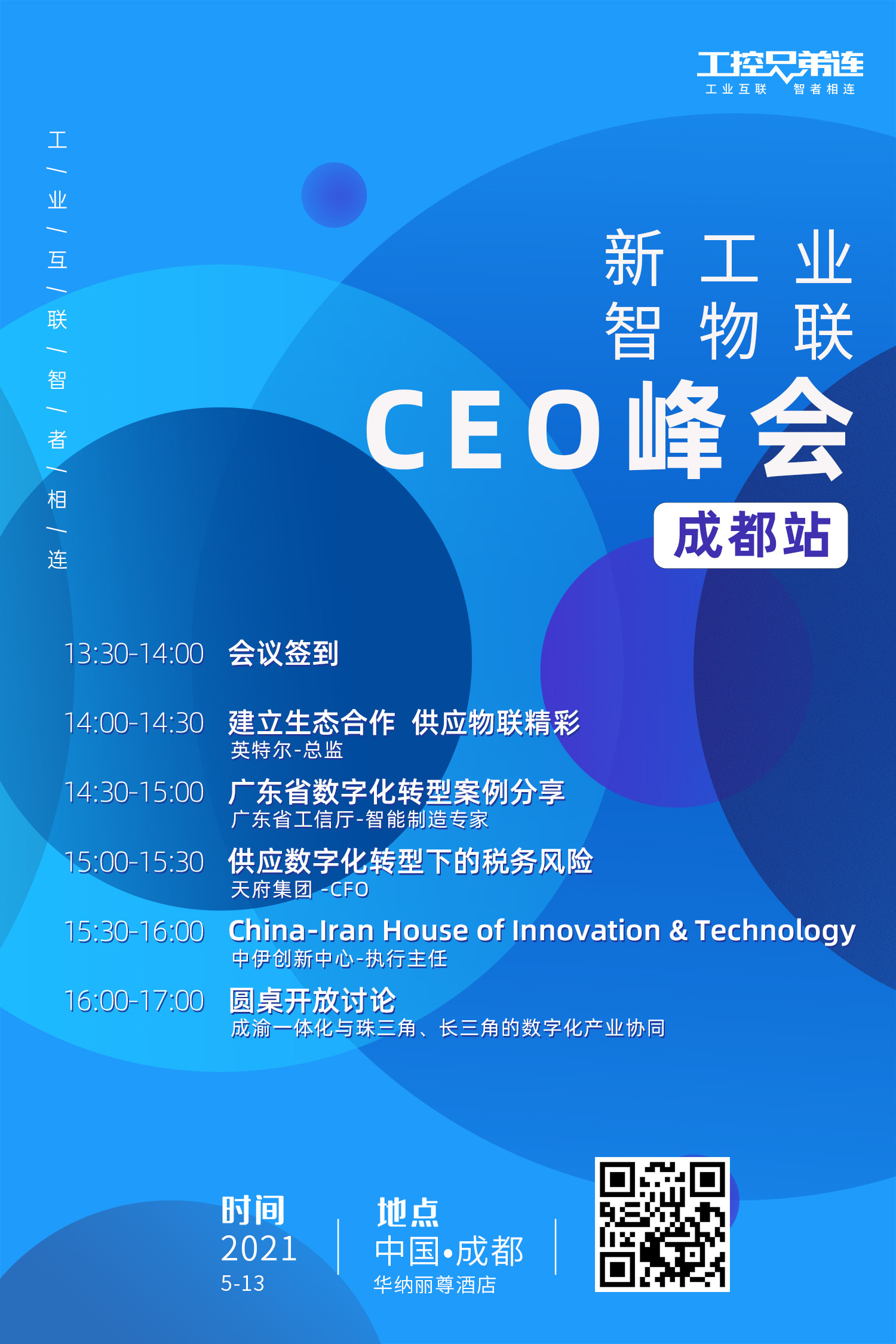 5月13日成都,工控兄弟连举办“2021成都《新工业 智物联》CEO峰会”。本次峰会的目的是推动数字智能在智能制造产业领域中的应用,加强龙头企业与中小企业的产业联动,促进产业资源的开放共享与整合发展,实现成都在数字制造领域的高质量跨越式发展。