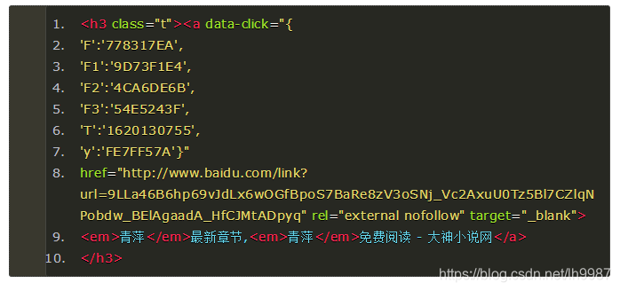 整个搜索返回的结果在一个h3的标签内,返回的搜索结果对应url在a标签内,具体url由href来指定。这里返回的url实际上是一个百度重定向的地址,可以通过打开该url访问对应网站,并通过返回响应消息获取真正网站的URL。
