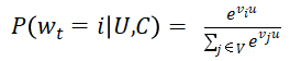 公式中的u、v分别是用户和视频的嵌入向量,u是由“用户特征”与“上下文特征”拼接得到的特征向量,用户历史上看过的视频的向量也是u的组成部分。。U是用户集,C是上下文。Vi代表第i个视频的向量,是需要优化的变量,通过训练才得到。这是一个标准的softmax公式,表示用户U在上下文C的情况下,观看第i个视频的概率。该方法通过一个(深度学习)模型来一次性学习出用户和视频的嵌入向量。